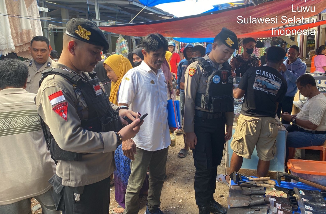 LUWU -Jajaran aparat kepolisian dari Polsek Suli menyisir pasar rakyat di Kecamatan Suli,Rabu (12/4/2023).