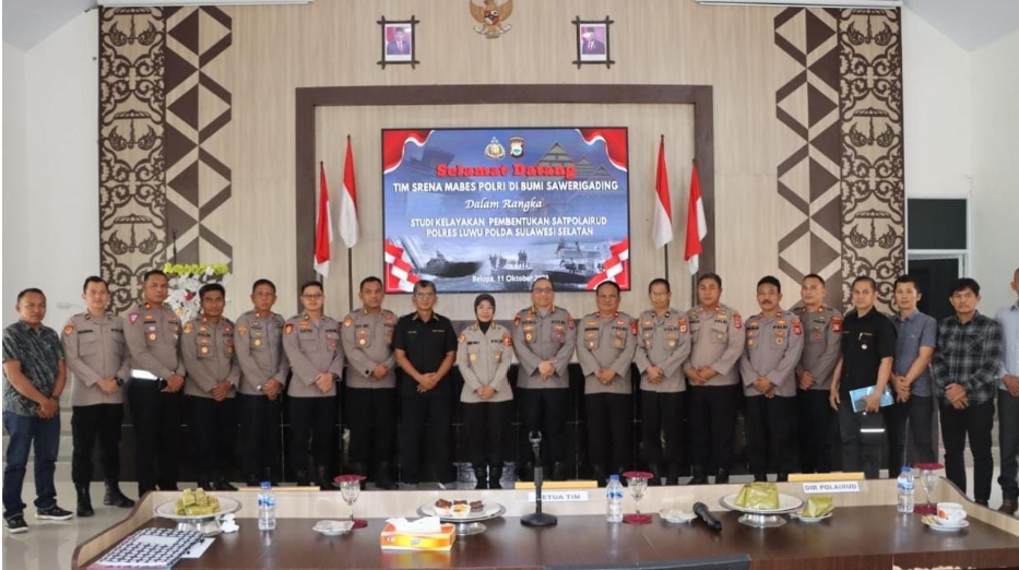 LUWU – Polres Luwu menerima kunjungan dari Tim Srena bersama Baharkam Mabes Polri didampingi Dirpolairud Polda Sulsel dan Birorena Polda Sulsel dalam rangka studi kelayakan pembentukan Satpolairud di wilayah hukum Polres Luwu, Rabu (11/10/2023).