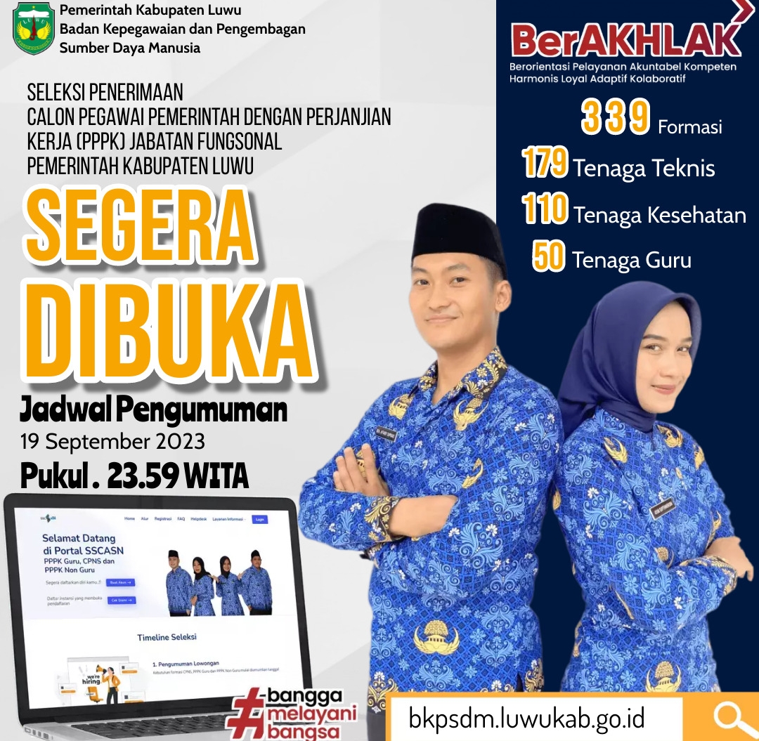 LUWU- Pemerintah Kabupaten Luwu melalui Badan Kepegawaian dan Pemberdayaan Sumber Daya Manusia (BKPSDM) secara resmi mengumumkan Seleksi Pengadaan Pegawai Pemerintah dengan Perjanjian Kerja (PPPK).