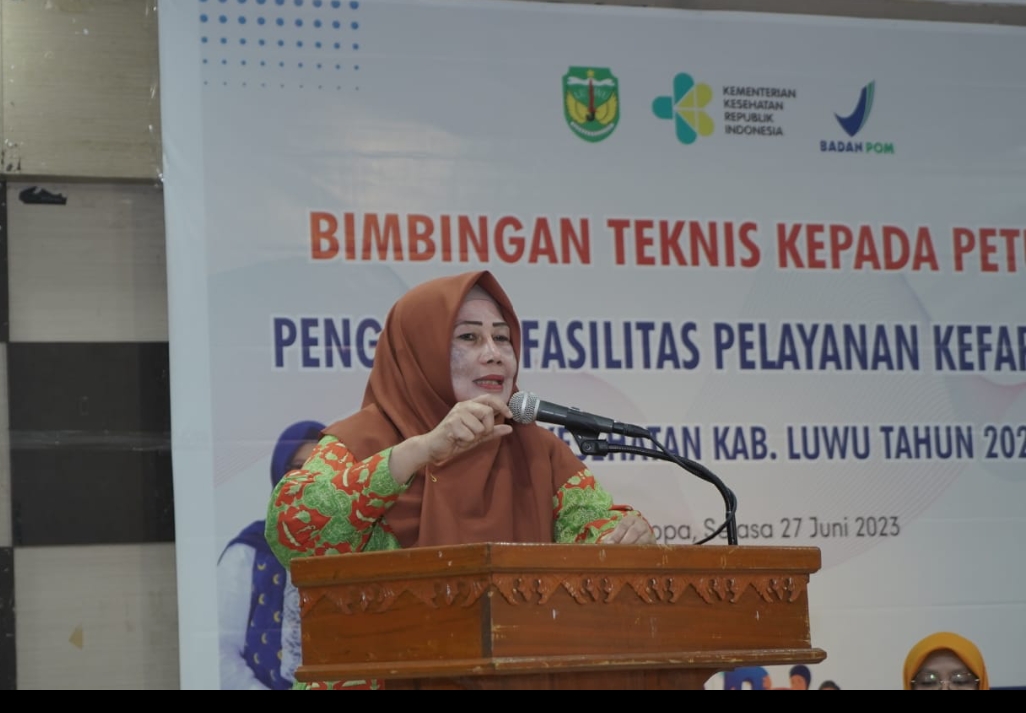 LUWU – Ketua TP-PKK sekaligus Ketua Forum Kabupaten Sehat kabupaten Luwu, Dr. Hj. Hayarna Basmin, SH. MSi membuka secara resmi kegiatan Bimbingan Teknis Kefarmasian di aula kantor Bappelitbangda, Kelurahan Senga, Kecamatan Belopa, Selasa (27/6/2023)