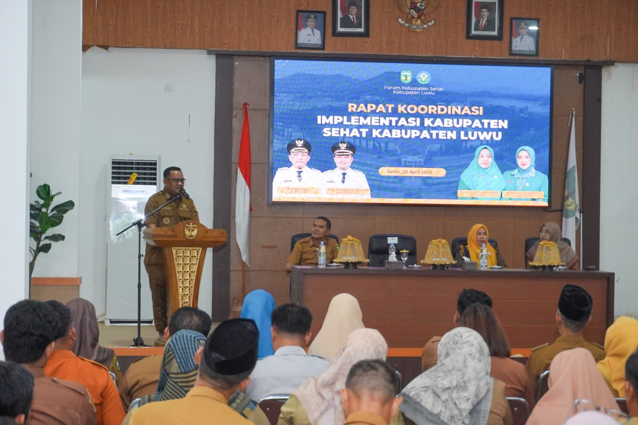 LUWU, Vedianews.com-Bupati Luwu, Patahudding, membuka Rapat Koordinasi Penguatan Forum dan Implementasi Kabupaten Sehat Luwu di Aula Rujab Bupati Luwu, Senin (20/4/2026).