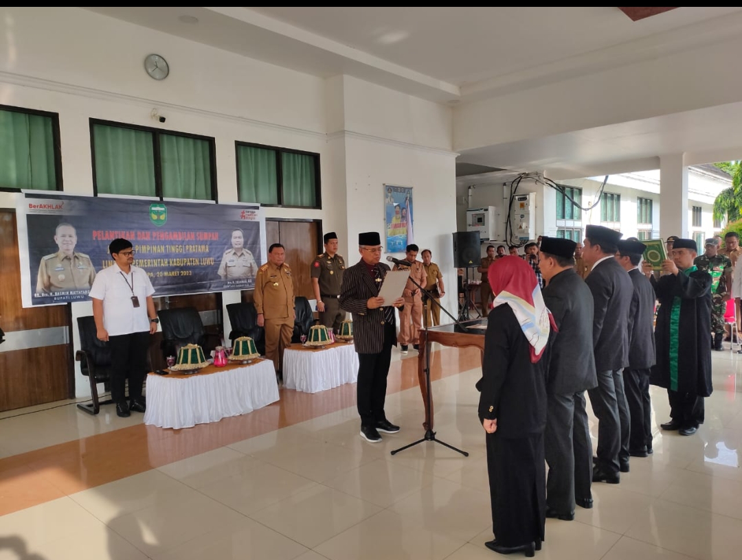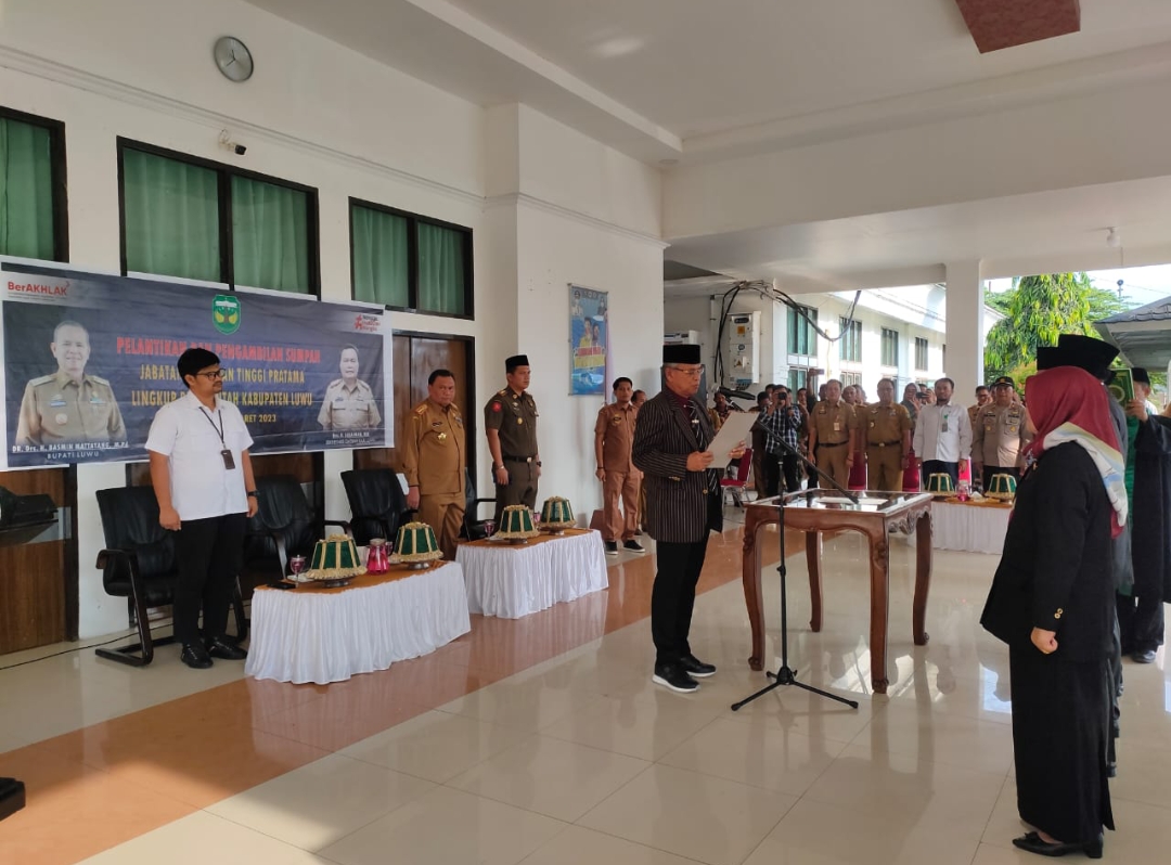 Pelantikan tersebut dihadiri Sekda Luwu, H Sulaiman, Kepala BKPSDM Luwu, H Andi Muhammad Ahkam Basmin, anggota DPRD Luwu, serta sejumlah kepala OPD Lingkup Pemkab Luwu.