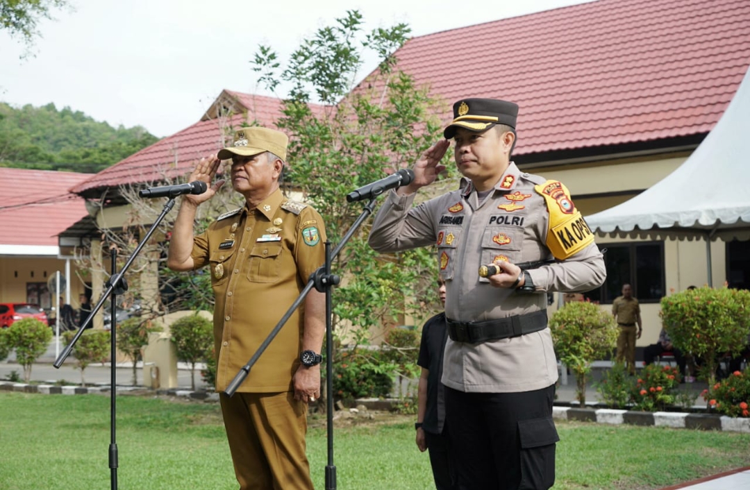Bupati Luwu Dr.H Basmin Mattayang bersama Kapolres Luwu AKBP Arisandi bertindak sebagai Inspektur Upacara Apel Gelar Pasukan Ops Keselamatan Pallawa 2023