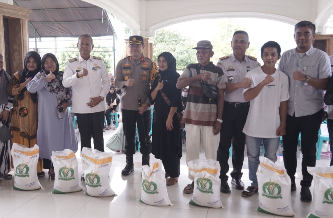 Didampingi Kapolres Luwu, AKBP. Arisandi, Bupati Luwu, Dr. Drs. H. Basmin Mattayang, Mpd secara resmi melepas penyaluran beras pemerintah untuk bantuan pangan tahun 2024 di rumah jabatan Bupati, Kelurahan Pammanu Kecamatan Belopa, Rabu (24/1/2024)