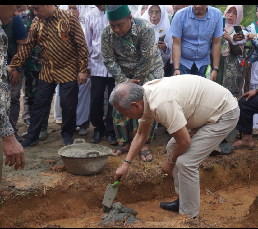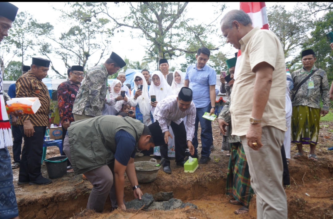 Bupati Luwu, Dr. Drs. H. Basmin Mattayang, M.Pd melakukan peletakan batu pertama atas pembangunan pondok pesantren As’adiyah Bahrul Ulum di Desa Rante Alang, Kecamatan Larompong, Minggu (21/01/2024)
