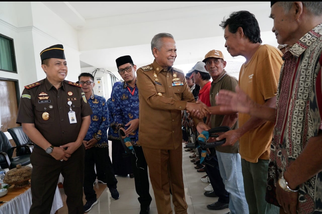 Diakhir sambutannya, Bupati mengajak para anggota kelompok tani untuk menebar kebaikan melalui bantuan handtraktor ini