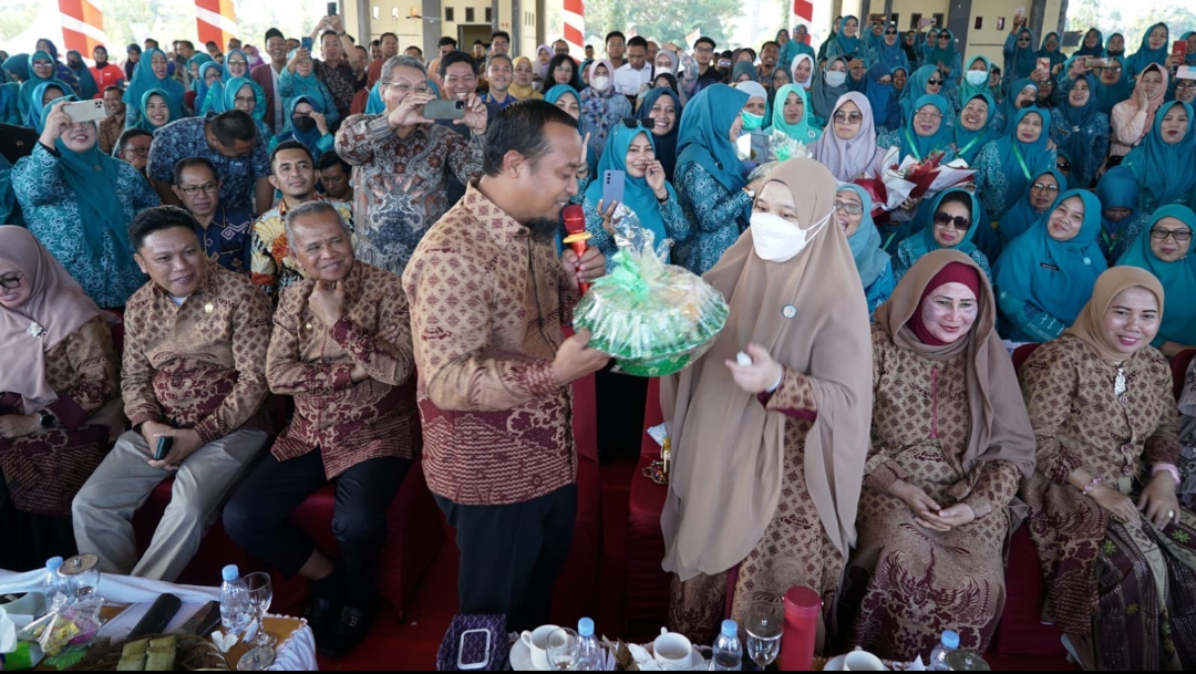 “ini tahun kedua kita laksanakan Jambore PKK, kemarin kita laksanakan di Kabupaten Selayar, dan hari ini saya juga ingin mengucapkan terima kasih kepada ibu Bupati Luwu. Beliau kami percayakan karena saya yakin jika ibu bupati semangat, bapak Bupati Luwu pasti ada disampingnya,” canda H. Andi Sudirman Sulaiman