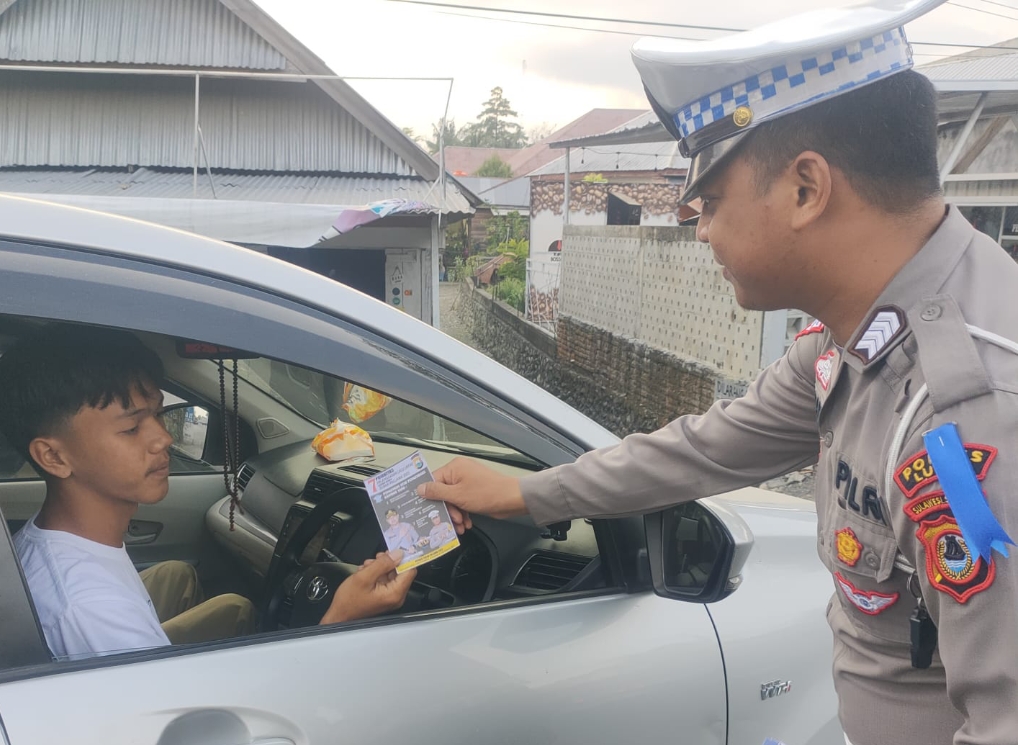 LUWU- Hari ketiga ops Zebra Pallawa 2023, Sat. Lantas Polres Luwu memberikan edukasi dan himbauan tertip berlalu lintas di jalan Trans Sulawesi Depan SPBU Kec Belopa Kab Luwu, Rabu (6/9/2023).
