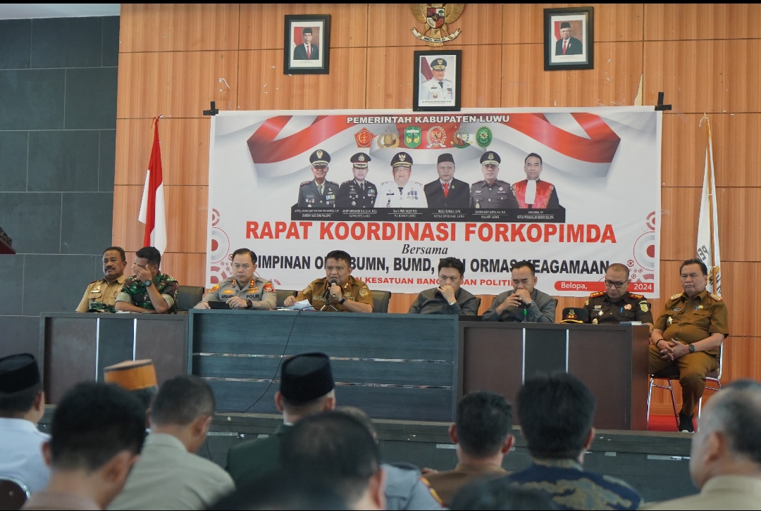 Menyambut hari raya Idhul Fitri 1445 H / 2024 M, Forum Koordinasi Pimpinan Daerah (Forkopimda) Kabupaten Luwu menggelar rapat dengan stakeholder terkait.