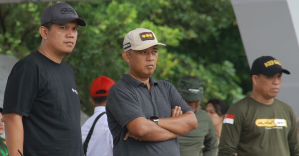 Kasatpol PP Luwu Andi Ahkam Basmin Memantau Personilnya Saat Gladi Perayaan HUT Satpol PP Ke 73 di Lapangan Karebosi Makassar