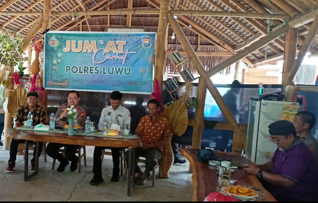 Saat proses Jum’at curhat berlangsung,Kapolres Luwu AKBP Arisandi mendapat masukan berbagai persoalan yang di hadapi para Kades,Lurah dan Tokoh Masyarakat.