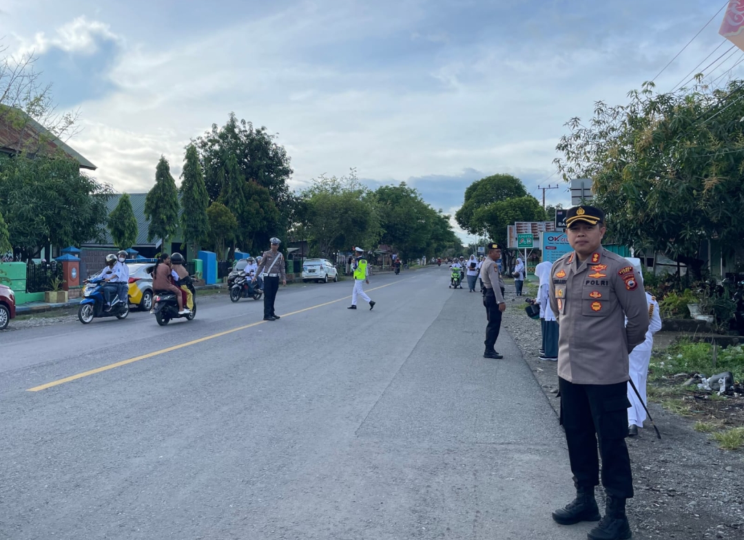 LUWU- Kapolres Luwu AKBP Arisandi, S.H., S.I.K., M.Si. mengontrol langsung personel Polres Luwu yang melaksanakan pos awal pelayanan dan pengaturan lalu lintas pagi hari pada beberapa titik jalur protokol di wilayah Polres Luwu, Senin (30/01/2023)