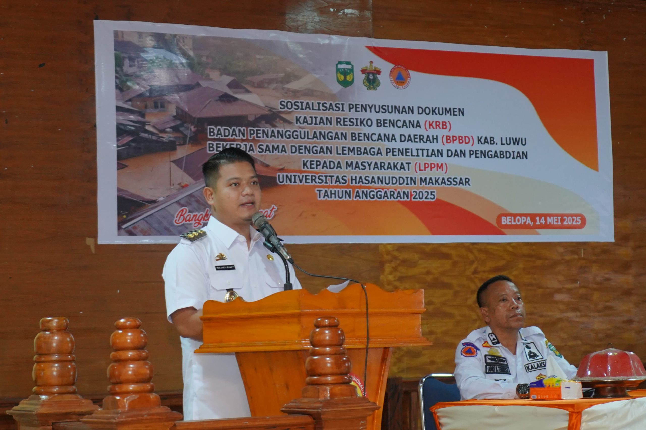 Wakil Bupati Luwu, Muh. Dhevy Bijak Pawindu, SH secara resmi membuka kegiatan Sosialisasi Penyusunan Kajian Risiko Bencana (KRB) diselenggarakan di Hotel Subur, Kecamatan Belopa Utara, Rabu (14/5/2025).