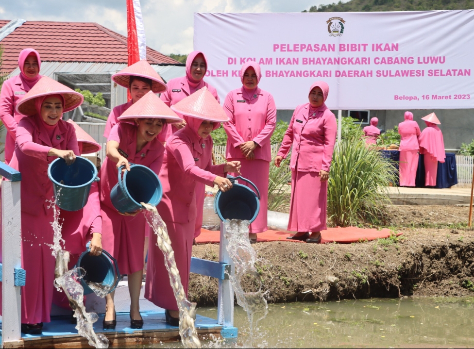 Kemudian dilanjutkan berkunjung ke lokasi P2L (Pekarangan Pangan Lestari) Bhayangkari Cabang Luwu untuk memanen hasil tanaman hidroponik dan melepaskan bibit ikan emas, ikan lele dan ikan nila ke kolam Bhayangkari Cabang Luwu sebagai wujud ketahanan pangan Bhayangkari Cabang Luwu.