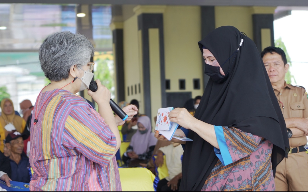Ketua TP PKK Kabupaten Luwu, Dr. Hj Hayarna Basmin, SH. MSi, mendampingi Tim komunikasi Program JHCCP/BA for Covid-19