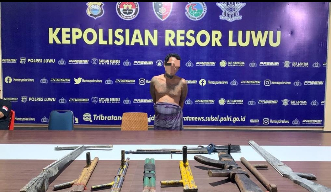 LUWU- Seorang pria dibekuk Tim Resmob Satreskrim Polres Luwu terkait kepemilikan senjata api rakitan ilegal beserta amunisinya, bertempat di Desa To’Lemo, Kec. Lamasi Timur. Selasa (26/9/23).
