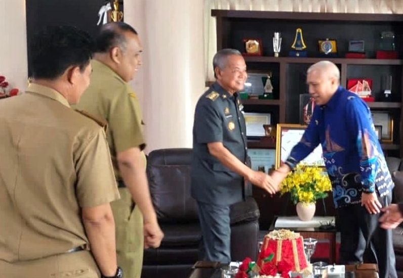 Bupati Luwu,Dr.H. Basmin Mattayang didampingi Asisten I Ahyar Kasim dan Kepala Bappeda Dr Moh Arsal Arsyad menerima kunjungan Rektor Unifa Muliyadi Hamid,Selasa(10/1/2023)