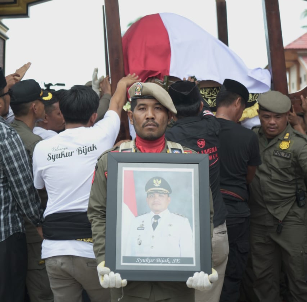 Ribuan masyarakat turut hadir mengantar ke tempat peristirahatan terakhir almarhum Syukur Bijak, isak tangis keluarga tidak kuasa terbendung melihat keranda diusung menuju ke lokasi pemakaman.