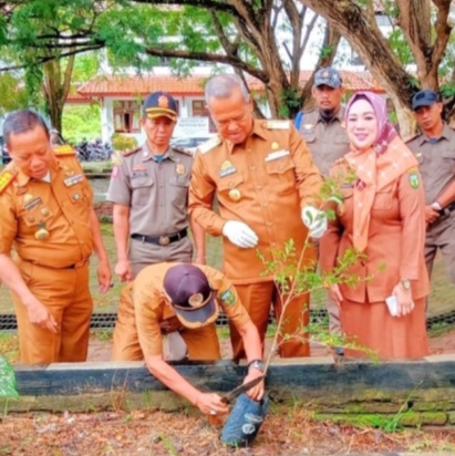 Bupati Luwu Basmin Mattayang Melakukan Penanaman Pohon secara simbolis di Dampingi Kepala Dinas Lingkungan Hidup Hj Enrika danPejabat OPD Lainnya