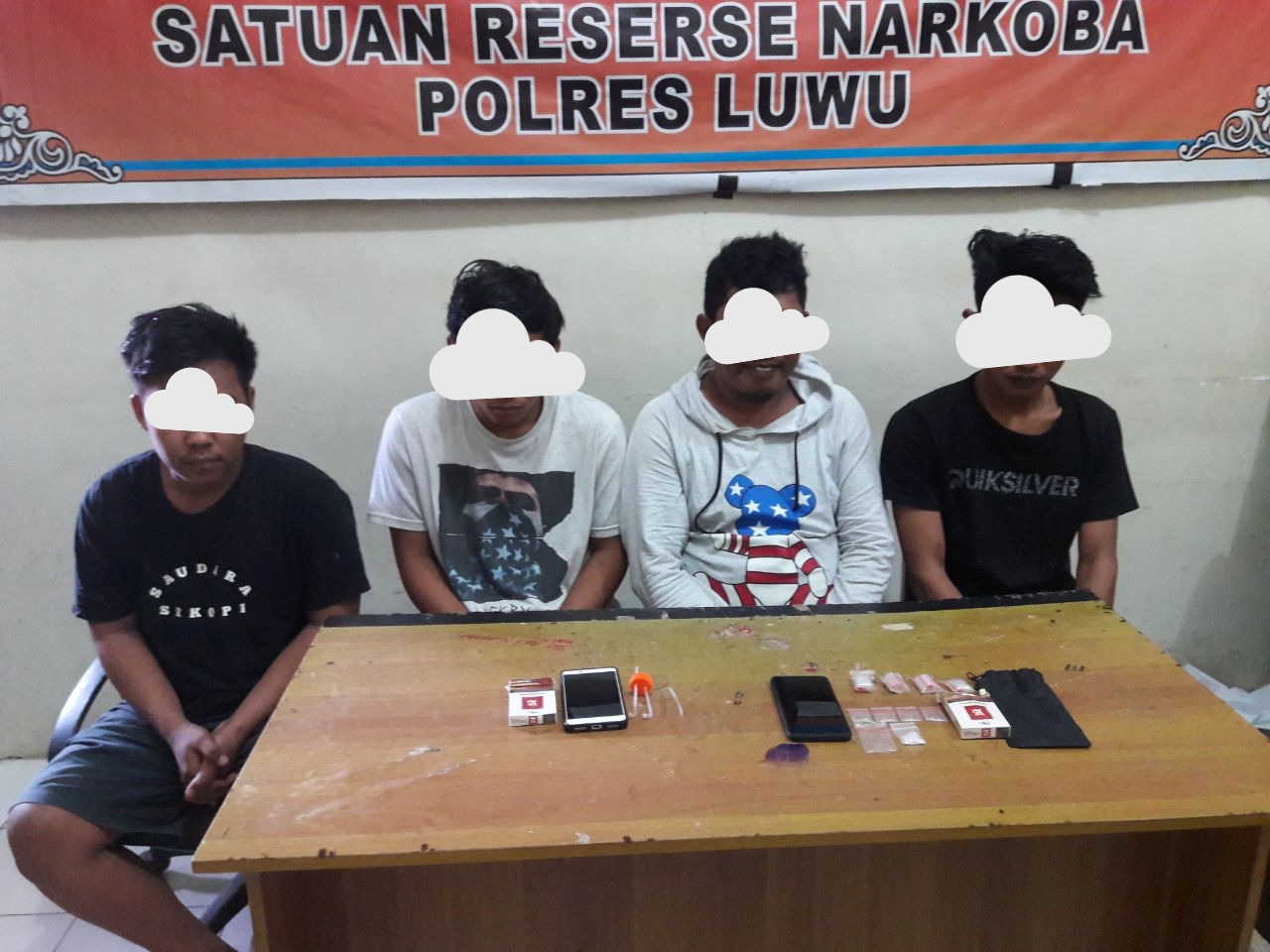 LUWU,Vedianews.com-Usai pesta sabu, empat pemuda diringkus Unit Narkoba Polres Luwu, Sabtu 13 Juli 2019.