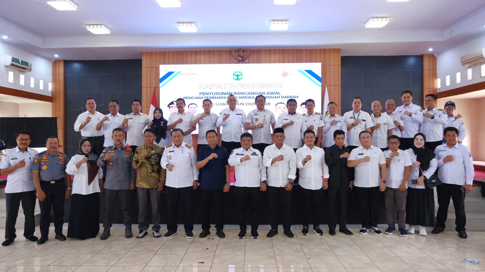 Bupati dan Wakil Bupati Luwu Terpilih H Patahudding-Dhevy Bijak Saat Hadir dalam acara Rapat Koordinasi Penyusunan Rencana Pembangunan Jangka Menengah Daerah (RPJMD) Kabupaten Luwu  Luwu 2025-2029 di aula Andi Kambo kantor Bupati Luwu di Belopa Rabu (15/1)