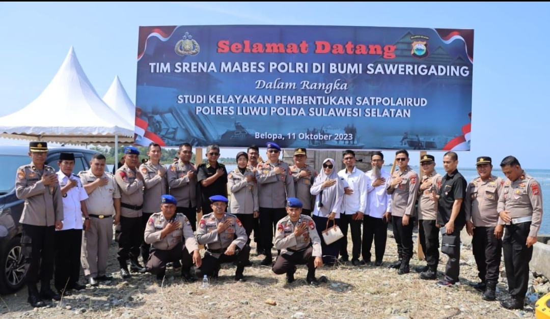 LUWU – Polres Luwu menerima kunjungan dari Tim Srena bersama Baharkam Mabes Polri didampingi Dirpolairud Polda Sulsel dan Birorena Polda Sulsel dalam rangka studi kelayakan pembentukan Satpolairud di wilayah hukum Polres Luwu, Rabu (11/10/2023).