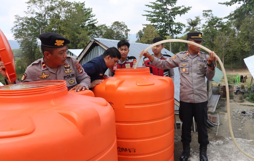 Kapolres Luwu AKBP Arisandi, S.H., S.I.K., M.Si melalui Kabag SDM Polres Luwu AKP Yosep Dendang mengatakan bahwa penyaluran air bersih kepada warga akibat kondisi cuaca kemarau akhir- akhir ini dampak El Nino yang menyebabkan banyaknya sumur sumur warga yang mengering.