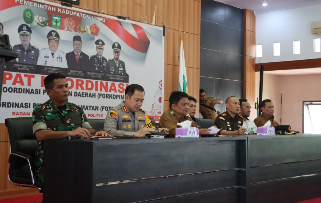 Kapolres Luwu AKBP Arisandi, S.H., S.I.K., M.Si. hadir dan bertindak sebagai narasumber dalam kegiatan rapat koordinasi Forkopimda dan Forkopimcam terkait dengan stabilitas keamanan dan ketertiban di Kabupaten Luwu, Senin (18/3/2024)