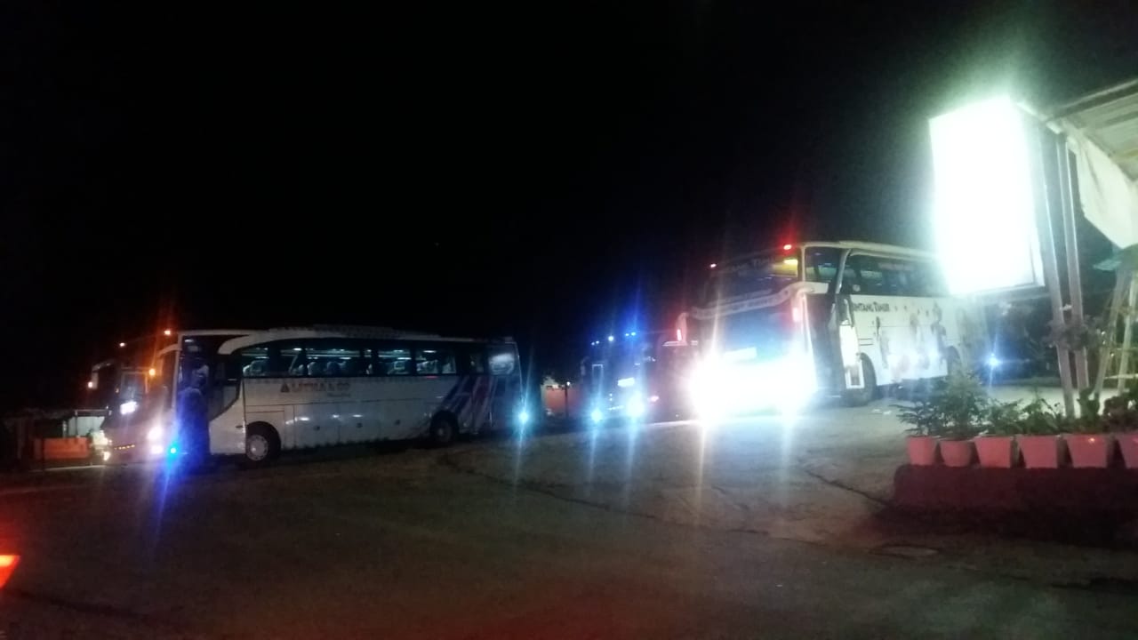 Pantawan langsung Vedianews senin (30/7/2019) malam sekira pukul 22 .59 wita nampak jejeran bus memadati parikiran di bahu jalan kiri dan kanan hingga di ujung jembatan suli.