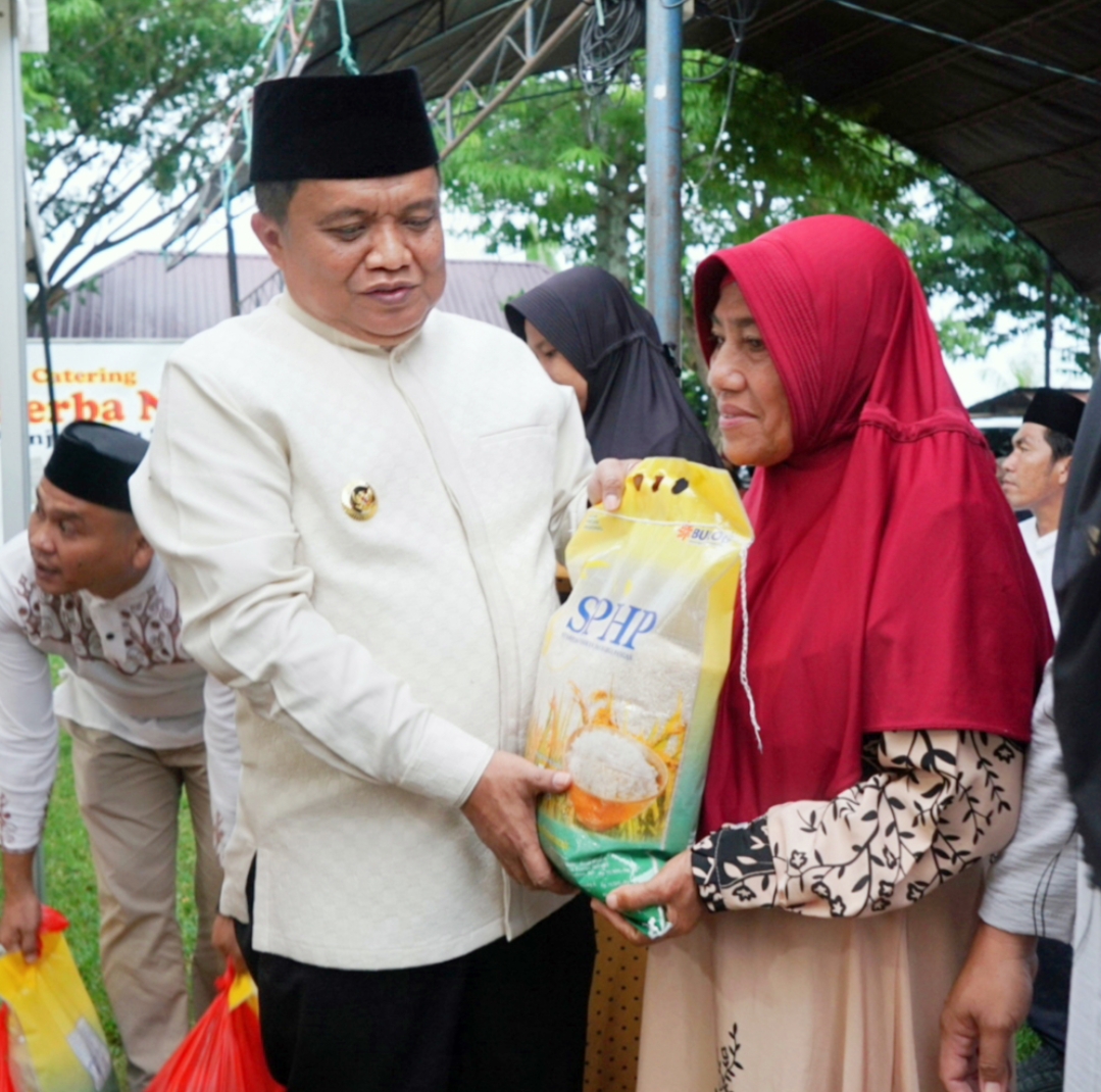 Pj. Bupati Luwu, Drs. H. Muh. Saleh, M.Si bersama Ketua TP-PKK Kabupaten Luwu, Hj. Aisyah Saleh mengawali kegiatan safari ramadhan di Kecamatan Bajo, Selasa (19/3/2024).