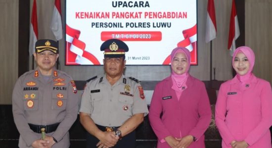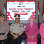 Kapolres Luwu AKBP Arisandi mempin upacara kenaikan pangkat pengabdian Kepada Ipda Yulis yang sebelumnya berpangkat Aiptu bertempat di Aula Tebbake Tongngenge Polres