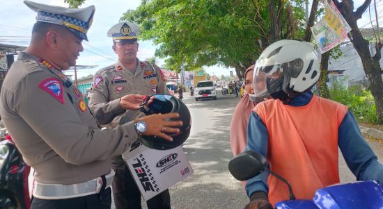 Aksi Simpatik Kasat Lantas Polres Luwu, Bagikan Helm Gratis Saat Giat Ops Kemanusiaan 2023