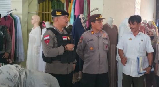 Kapolsek Suli AKP Idul Didampingi Kepala Pasar Rakyat Suli memantau keamanan pasar rakyat Suli jelang dua pekan lebaran LUWU -Jajaran aparat kepolisian
