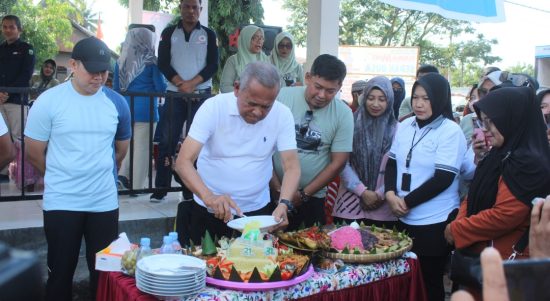 Bupati Luwu, Dr. Drs. H Basmin Mattayang, MPd didaulat untuk memotong nasi tumpeng sebagai bentuk rasa syukur masyarakat memperingati Hari Jadi Ke