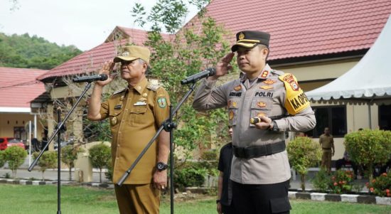 Bupati Luwu Dr.H Basmin Mattayang bersama Kapolres Luwu AKBP Arisandi bertindak sebagai Inspektur Upacara Apel Gelar Pasukan Ops Keselamatan Pallawa 2023 LUWU