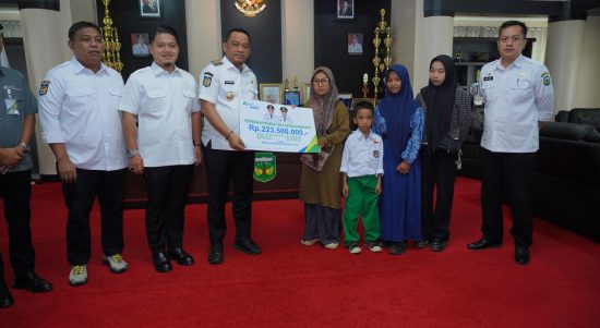 LUWU,Vedianews.com-Bupati Luwu, Patahudding, menyerahkan santunan kecelakaan kerja kepada keluarga almarhum Yunus di ruang kerja Bupati Luwu, Rabu (22/4/2026). Total santunan yang diberikan