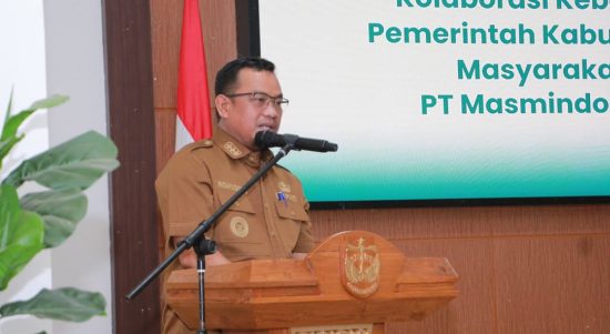 LUWU, Vedianews.com–Bupati Luwu, Patahudding, menyampaikan sambutan pada acara Silaturahmi Forum Desa PT Masmindo Dwi Area (MDA) yang dirangkaikan dengan penyerahan sejumlah program