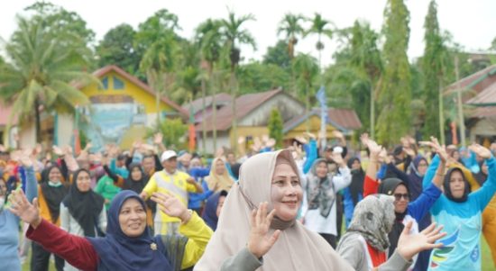 Hayarna Hakim Bersama masyarakat Larompong Selatan mengikuti senam di Lapangan Lappuna Pao Desa Temboe LUWU– Senam merupakan salah satu alternatif gratis untuk