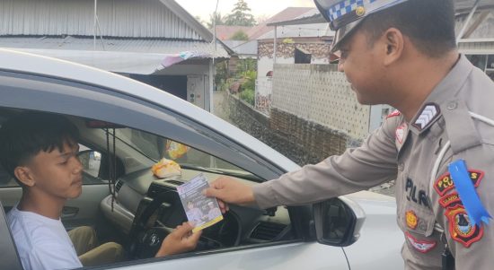 Hari ketiga ops Zebra Pallawa 2023, Sat. Lantas Polres Luwu memberikan edukasi dan himbauan tertip berlalu lintas di jalan Trans Sulawesi Depan