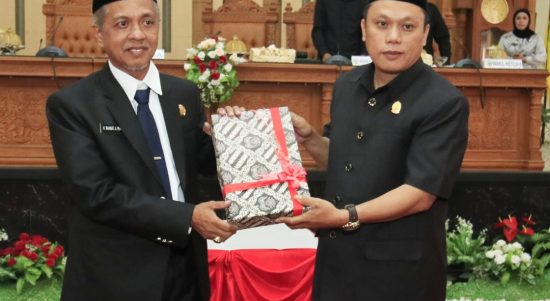Asisten III Bidang Administrasi Umum, Drs. H. Rahmat Andi Parana menyerahkan Rancangan Peraturan Daerah (Ranperda) Perubahan Anggaran Pendapatan dan Belanja Daerah (APBD)