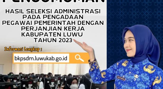LUWU- Badan Kepegawaian dan Pengembangan Sumber Daya Manusia (BKPSDM) Kabupaten Luwu mengumumkan hasil seleksi administrasi pengadaan Pegawai Pemerintah dengan Perjanjian Kerja (PPPK)