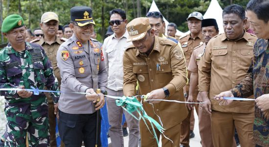 Kapolres Luwu AKBP Adnan Pandibu, S.H., S.I.K., hadiri kegiatan peresmian dan serah terima Jembatan Kadundung dan Jembatan To’barru yang berlangsung di Desa