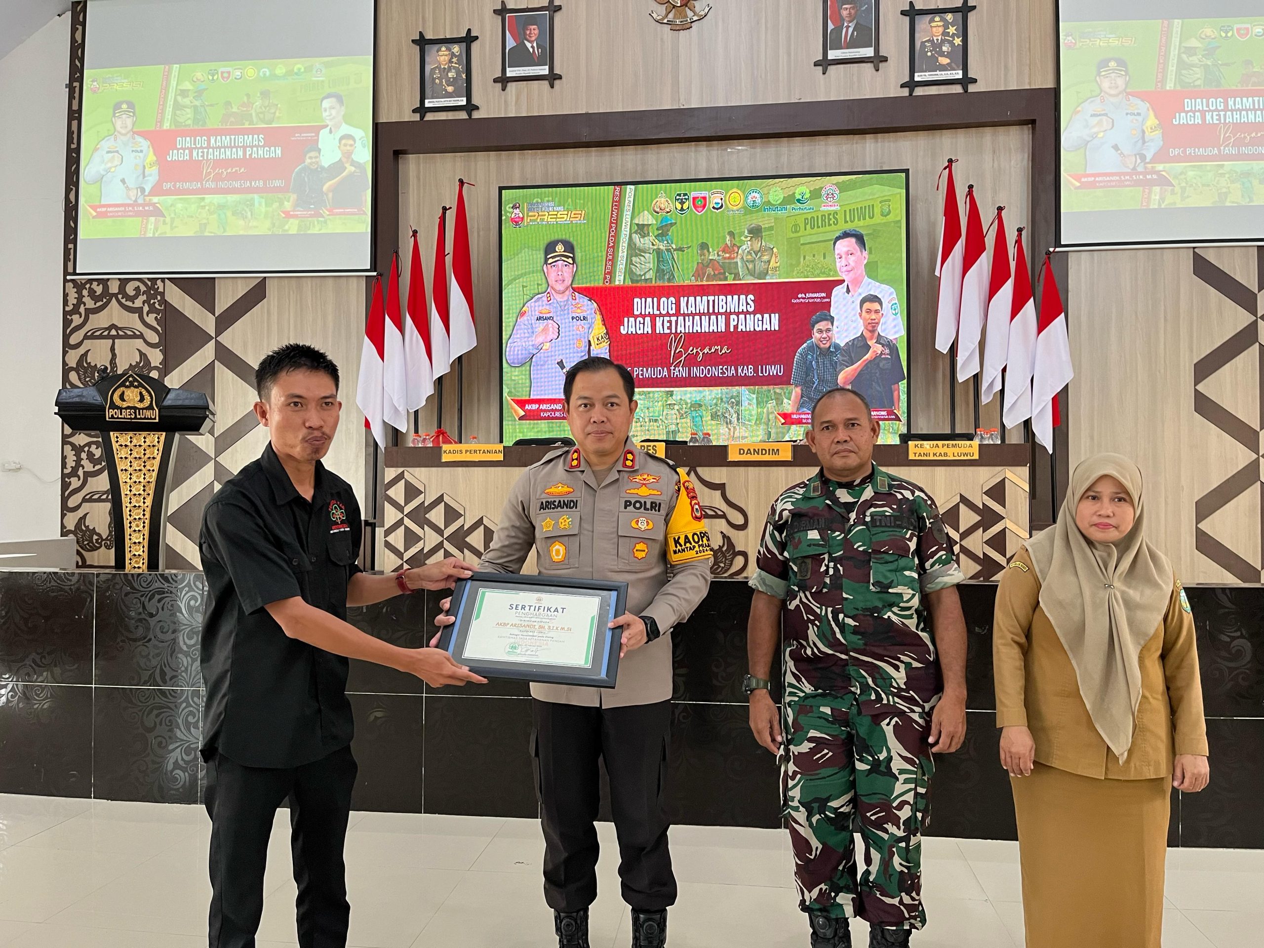 Kapolres Luwu AKBP Arisandi Menggelar forum Dialog Kamtibmas Jaga Ketahanan Pangan bersama DPC Pemuda Tani Indonesia Kabupaten Luwu, bertempat di Aula Tebakke Tongngenge Polres Luwu, Selasa (25/2/2025).
