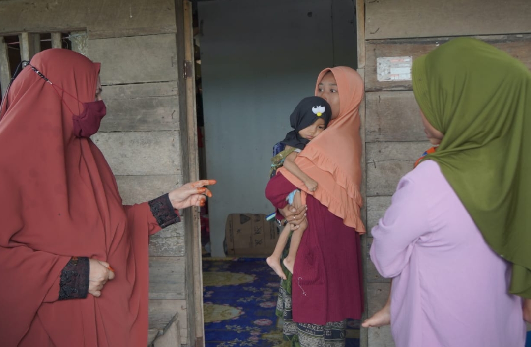Hayarna mengunjungi langsung kediaman anak dengan kondisi gizi buruk tersebut setelah menerima laporan pada rapat pembentukan dan pelaksanaan rumah gizi PKK dalam rangka percepatan penurunan angka stunting, Rabu (22/04/2023).