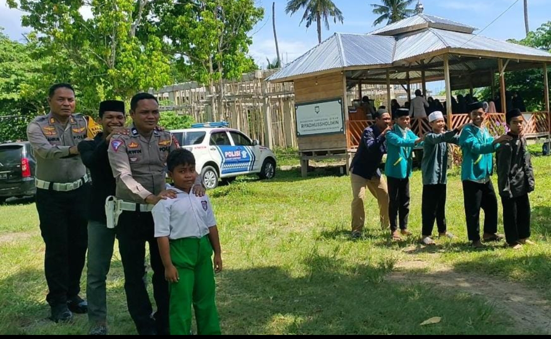 Personil Satlantas Polres Luwu kunjungi para santri dan santriwati Pesantren Darul Istiqamah yang saat ini belajar di Ponpes Tahfidzul Qur’an Riyadhussolihin di Desa Murante Kabupaten Suli guna memberikan trauma healing, Selasa (9/1/24).