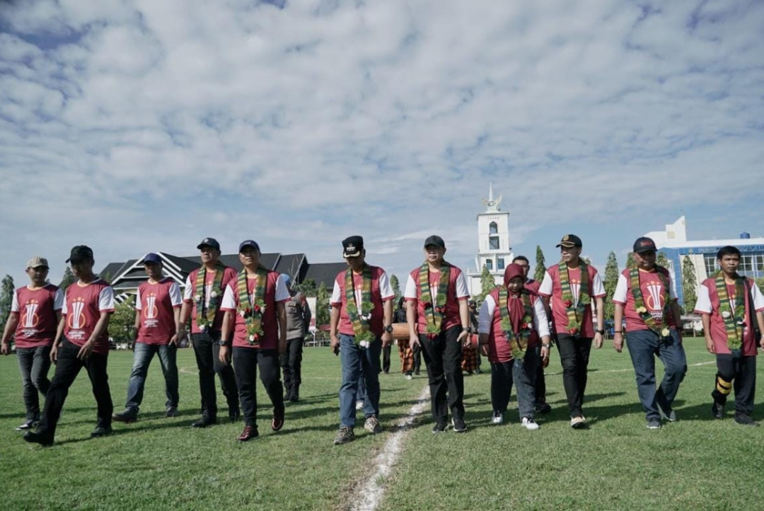 Pembukaan Laga Kapolres Luwu Cup III di tandai dengan tendangan bola perdana oleh Bupati ,Kapolres,Forkopimda dan Ketua Askab PSSI Luwu